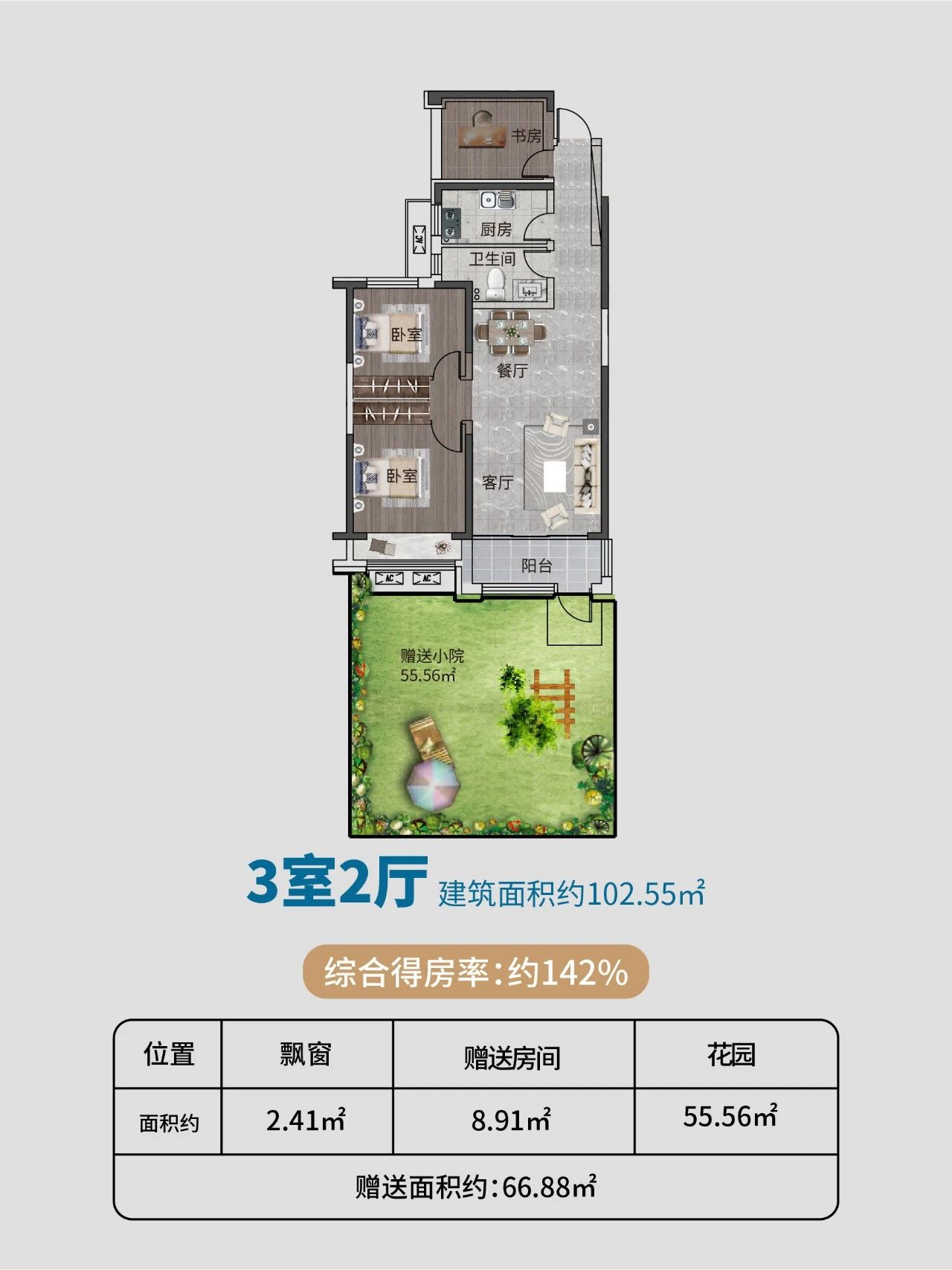 ✦ 贈送約30-94㎡院子
