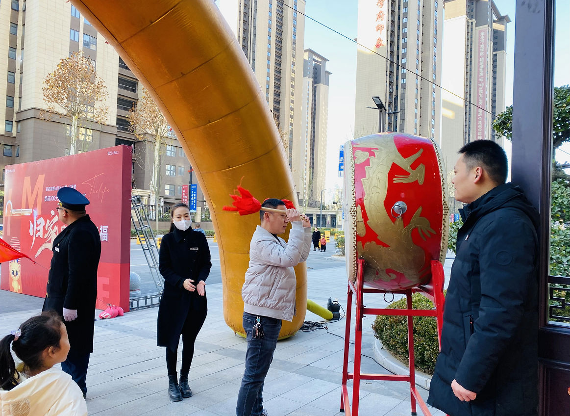 業主達到現場后,由工作人員接待并全程陪同。社區主大門,山河鼓韻響起,祥獅起舞,寓意業主吉祥如意、宅興人旺。