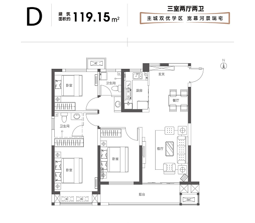 戶戶贈送:三/四開間朝南,連通式陽臺50%贈送;